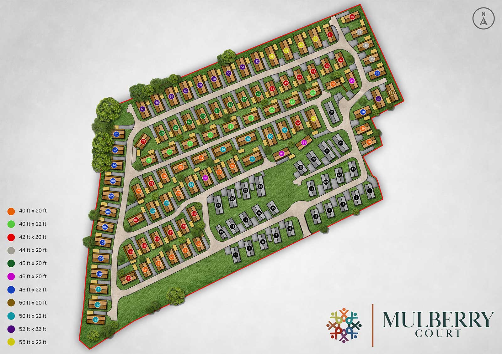 Mulberry Court is a peaceful, gated residential park designed exclusively for the semi-retired and retired (over 45s). Each home is set within private landscaped gardens, featuring expansive double driveways and high-specification interiors. The park is pet-friendly and benefits from secure gated access, on-site maintenance, CCTV, and a strong sense of community.
